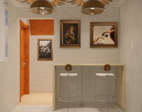 Com uma abordagem minimalista e atemporal, o design prioriza linhas limpas, iluminação natural e uma paleta de cores neutras – onde o branco puro e tons terrosos criam uma base serena, realçada por elementos estratégicos em madeira e texturas naturais. A disposição inteligente dos espaços integra áreas de criação colaborativa com zonas de concentração individual, enquanto soluções tecnológicas discretas garantem máxima funcionalidade.