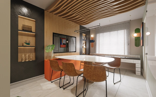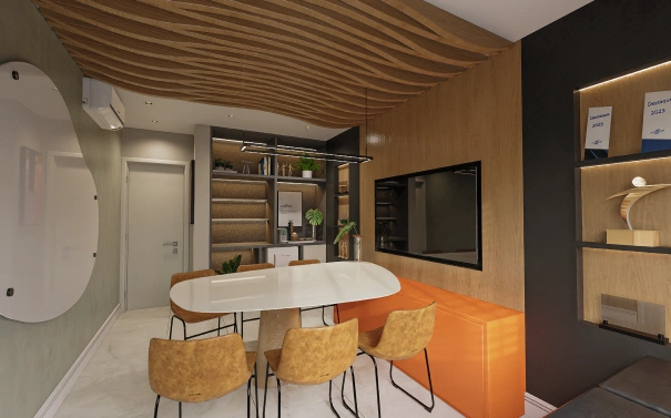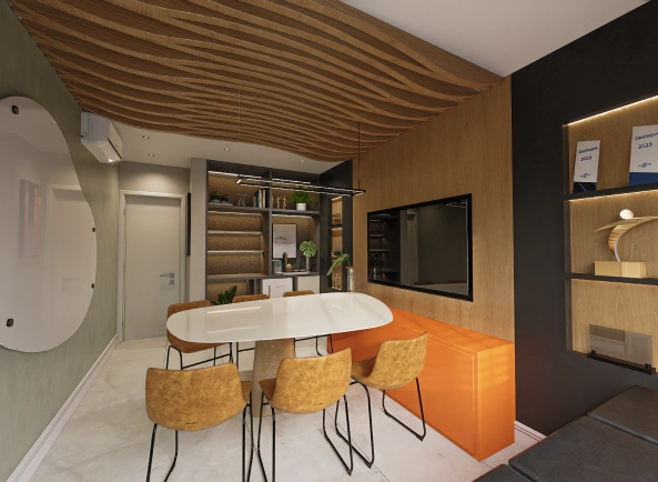 A Sala de Reunião da Atratis Digital foi projetada para refletir a inovação e a modernidade que marcam a identidade da empresa. Com um design clean e funcional, o espaço foi pensado para promover a produtividade e a colaboração, aliando estética e praticidade. A paleta de cores neutras e os detalhes em tons vibrantes criam um ambiente equilibrado, enquanto a iluminação natural e os elementos de biofilia trazem conforto e bem-estar.